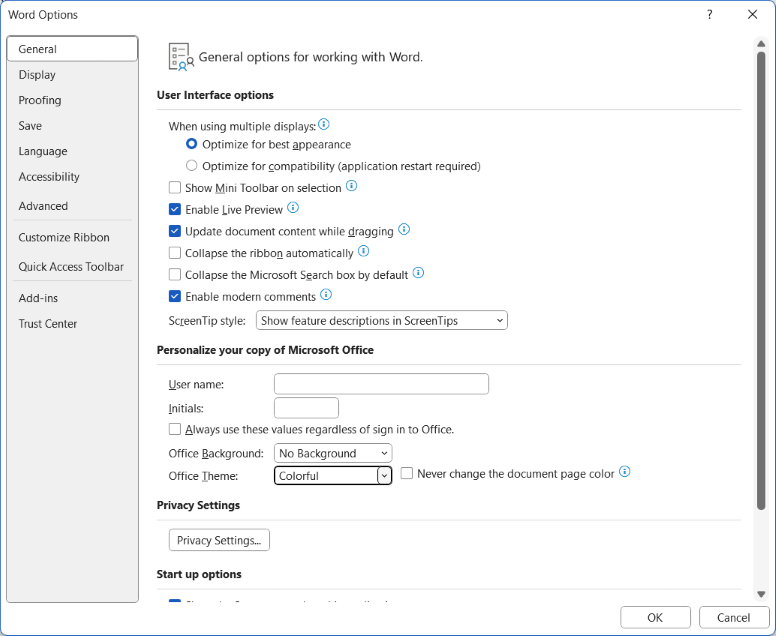 - Scroll down to locate the Personalise Your Copy of Microsoft Office Section